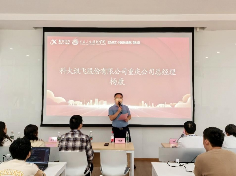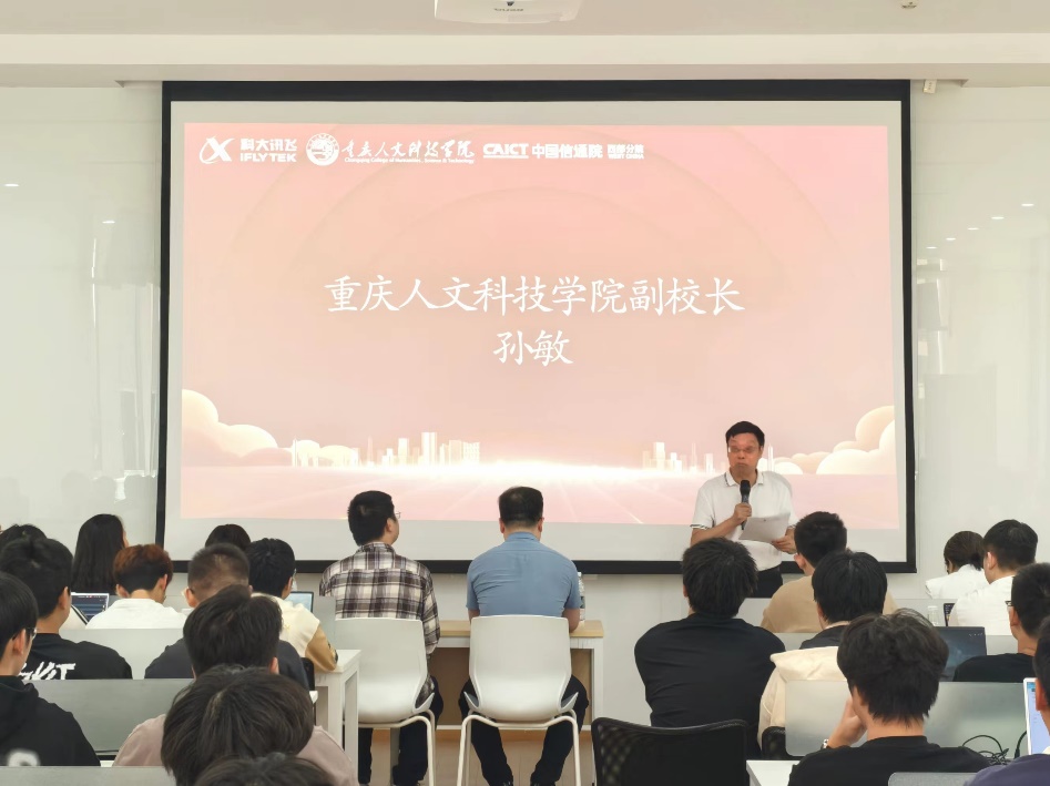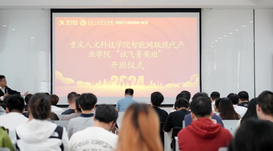 10月8日下午,太阳成集团122ccvip智能网联现代产业公司“讯飞菁英班”开班仪式在成渝双城经济圈产业数字化赋能基地举行。科大讯飞重庆公司总经理杨康、高校人才培养运营总监炎愫倩,太阳成集团122ccvip副董事长孙敏、教务处处长王璐、太阳成集团122ccvip常务副经理陈滢生、太阳成集团122ccvip副经理孙宝刚等出席本次仪式。