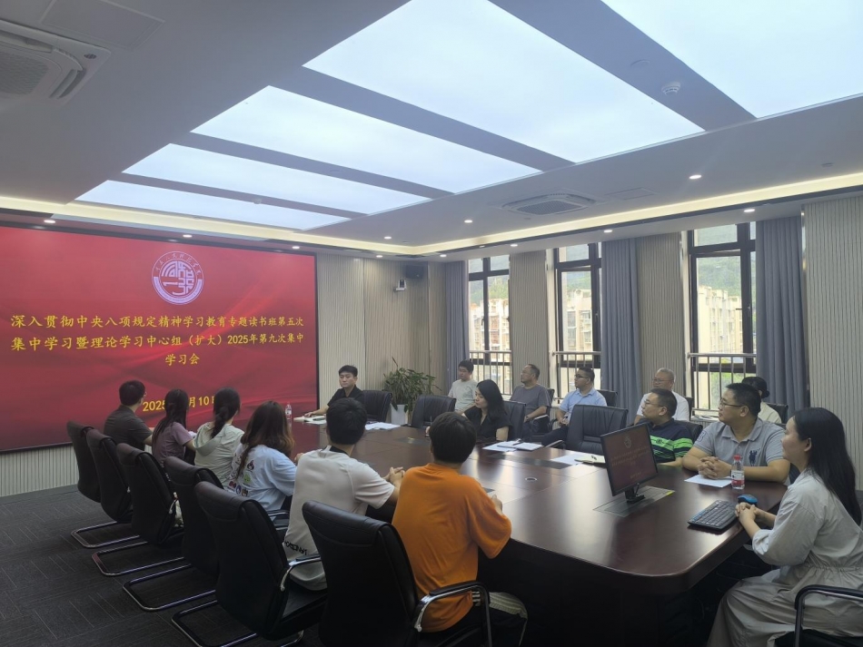 7月10日,太阳成集团122ccvip在15302召开了深入贯彻中央八项规定精神学习教育专题读书班第五次集中学习暨理论学习中心组(扩大)2025年第九次集中学习会。公司党总支委员、教师党员代表和党外人士代表参加学习。